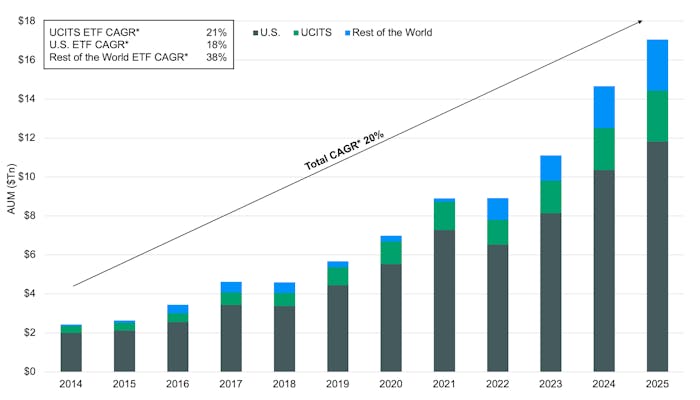 Global ETF AUM growth over time