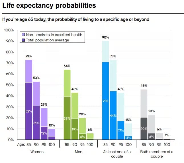 Thanks to advances in healthcare, most of us are now living longer in retirement than what we are budgeting for financially. It's important to be planning for a retirement of around 35 years. While that may sound excessive, the maths isn't crazy: some people retire at 65 and live until they are 100.