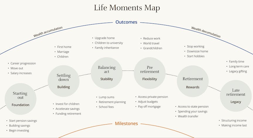 This guide takes a look at some key life moments, the big financial milestones many of us will aim for on our lifelong wealth journey, to illustrate how your own long-term financial plans might shape up. The guide then explains what you can expect from your relationship with your wealth manager, if you choose to use one, including the types of information they may ask for, and why it is important for them to tailor the guidance or advice you receive.
